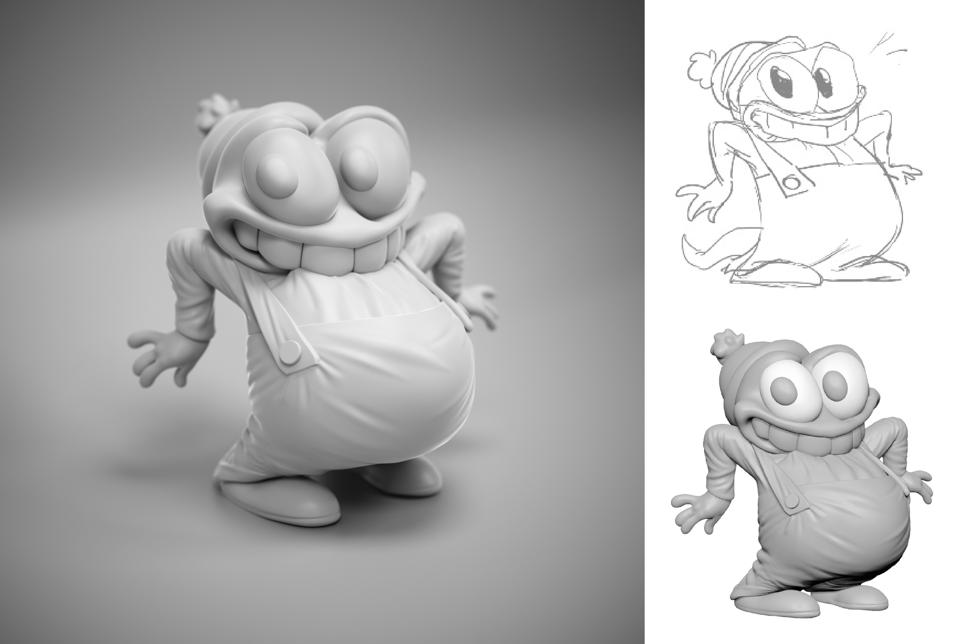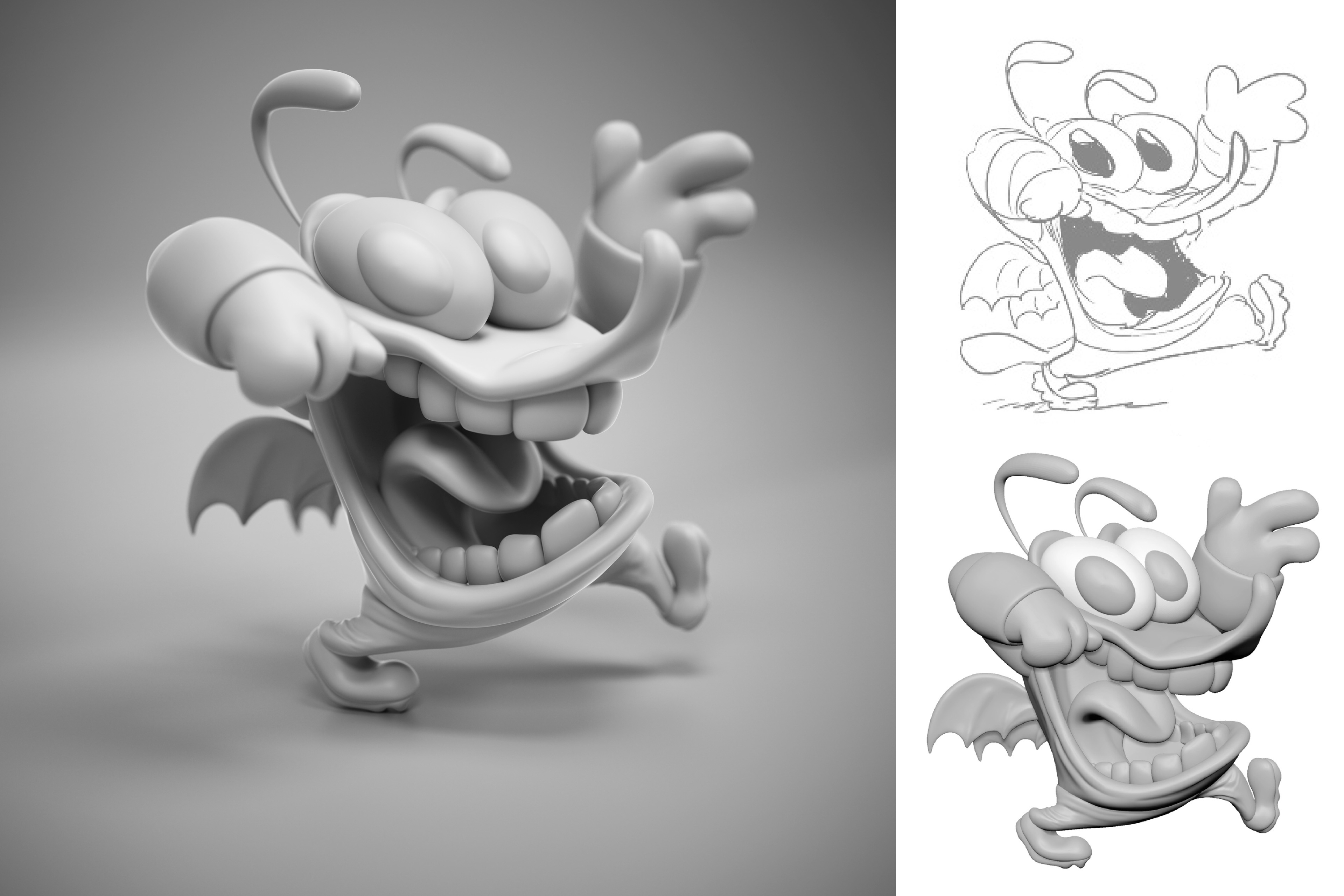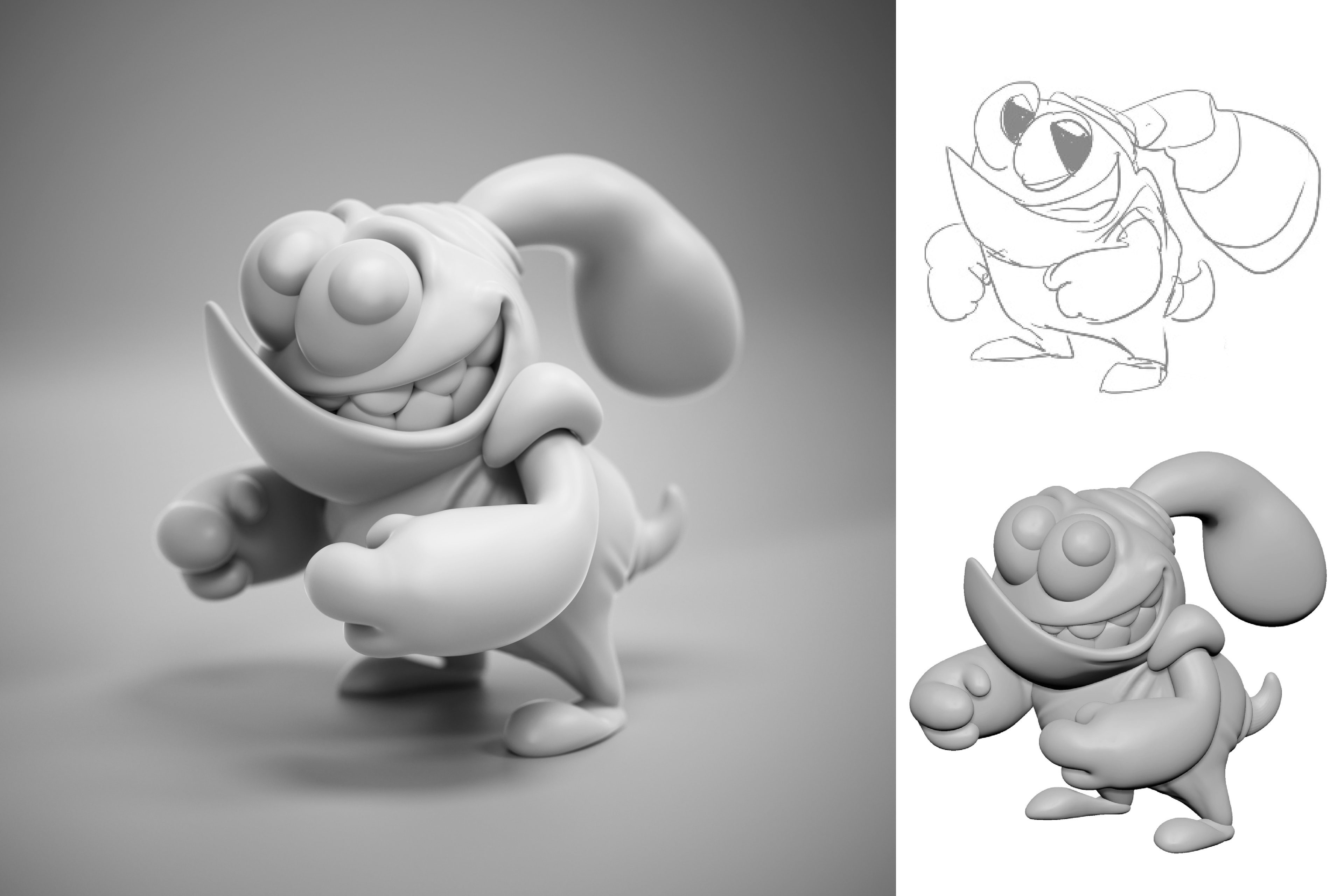 and I love to sculpt 3D versions of his characters in ZBrush and Cinema 4D