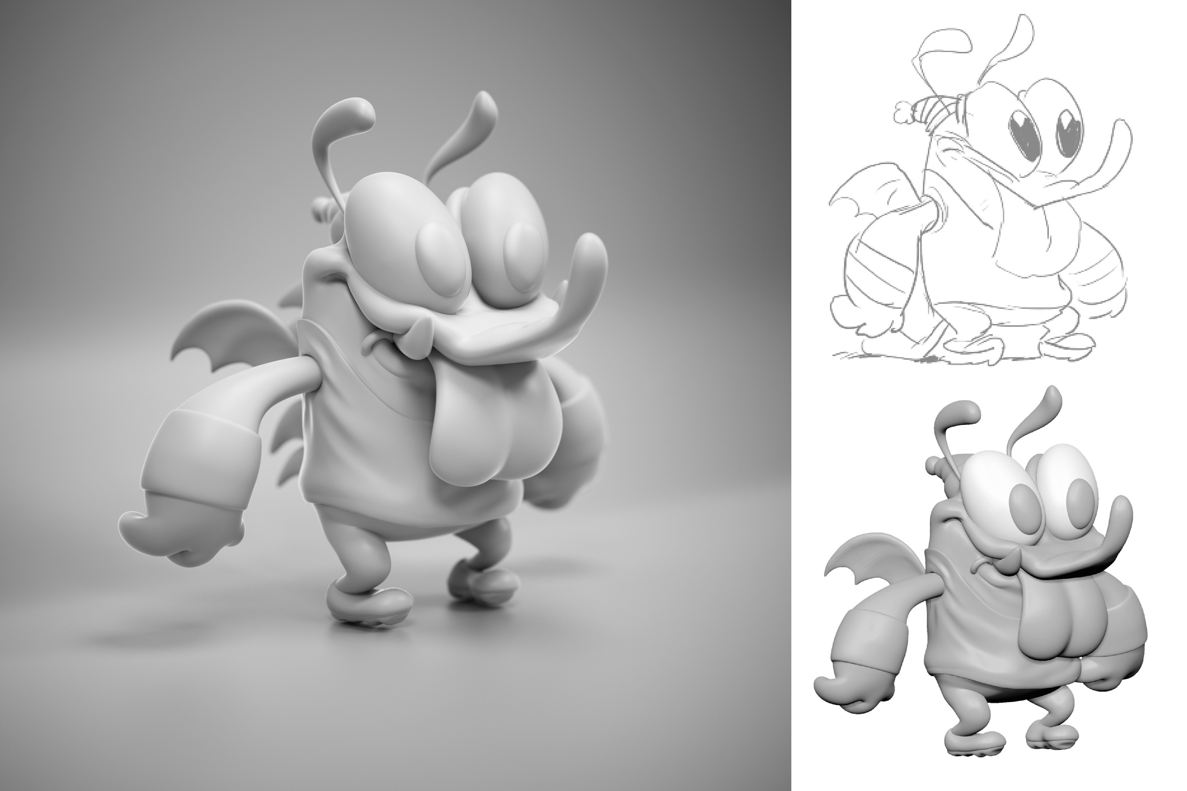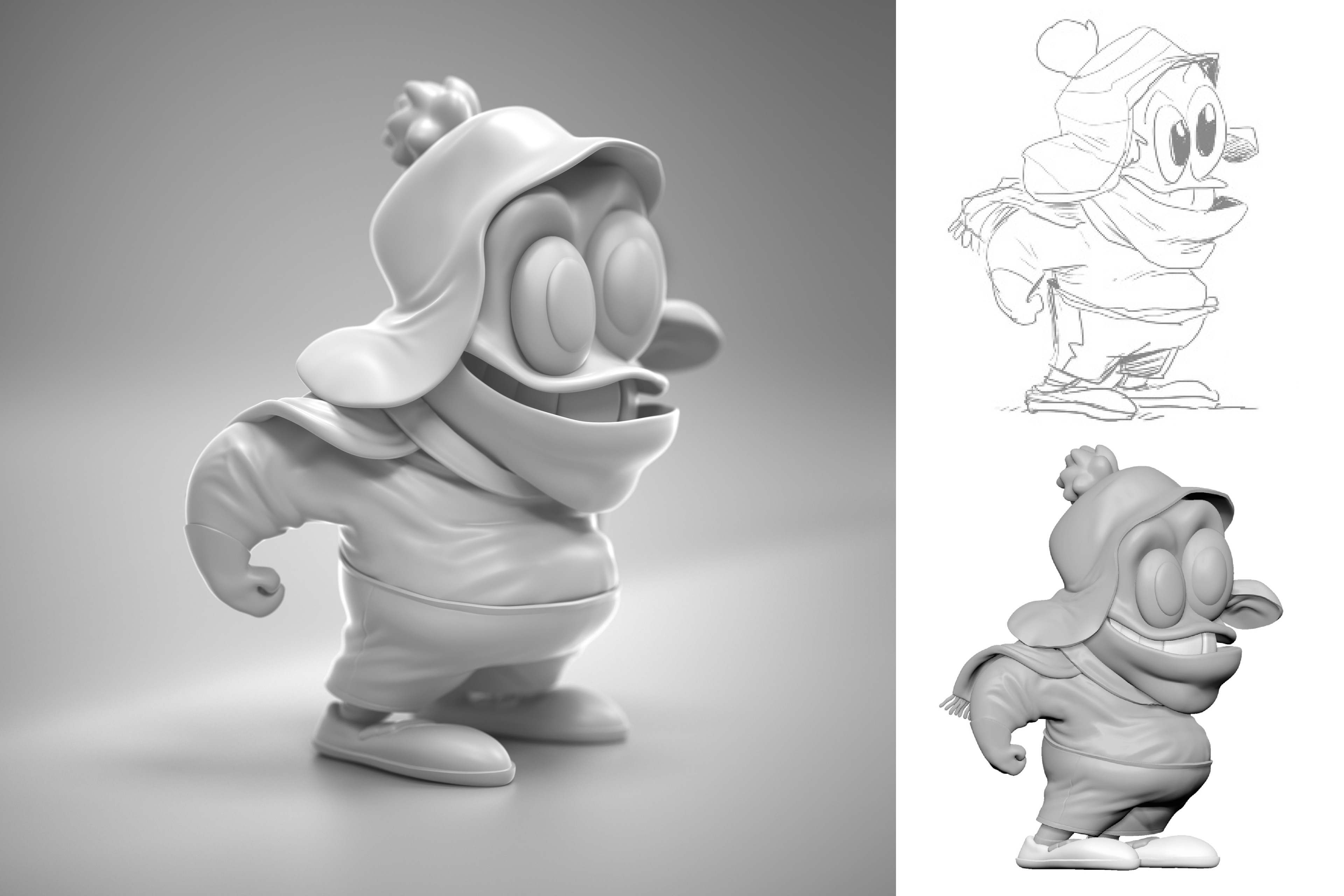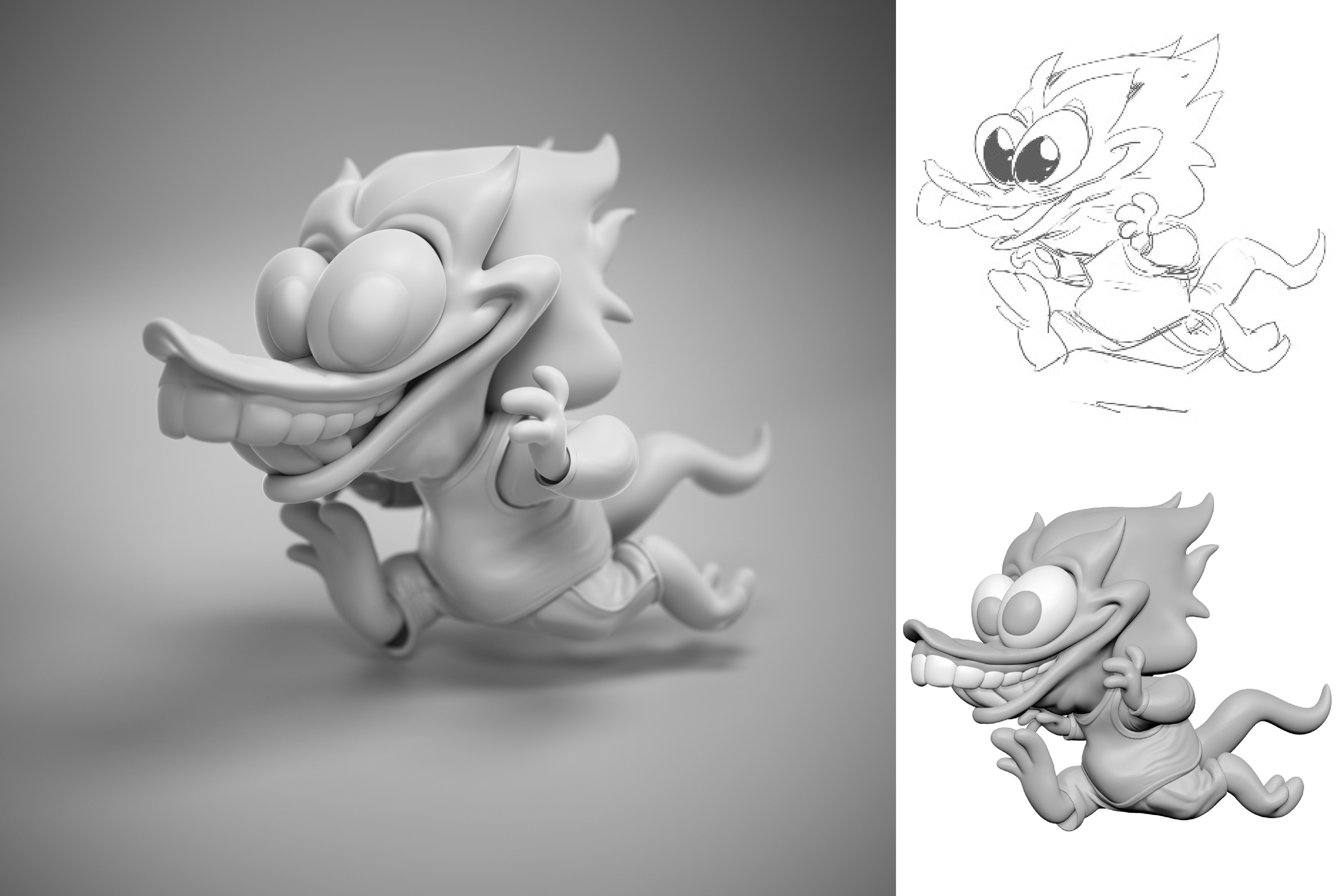 and I love to sculpt 3D versions of his characters in ZBrush and Cinema 4D