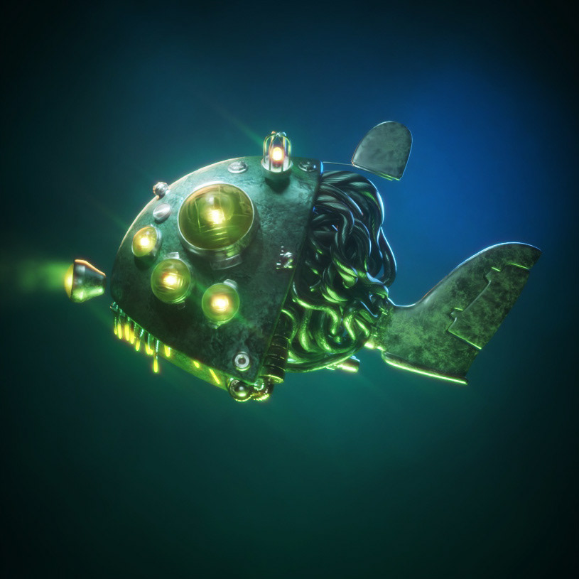 A Steampunk style deep sea fish, based on a Daron Parton artwork.